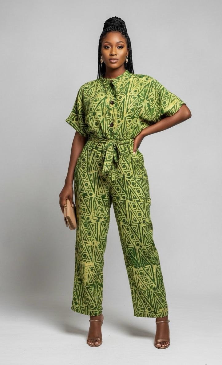 Une superbe combinaison en ADIRE CREPE (tissus traditionnel teinte à la main), légère idéale pour les beaux jours .